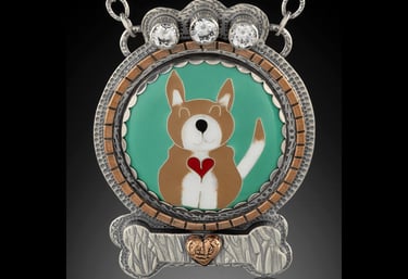 My work is driven by the exploration of imagery, materials, and process. The use of color, particularly a bold and rich palette, is a prevalent and signature feature of my work. My love for and constant observation of nature can be found in images of fauna, flora, and even insects. My jewelry is made with thought and heart behind it... and at times very comical...