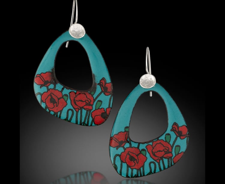 At the age of 21, I left the nest, went off to school, and began working traditional jobs to support my education and living expenses. The onset of my father’s long and ultimately terminal illness brought me home in 2017 at which time I again found a serious passion for the art of jewelry making, during a time of grieving and soul searching. The return to artistic expression was at first a coping mechanism for dealing with his illness and then loss and has ultimately become my career. I have dedicated myself to this bold expression since that time and began exploring the techniques of dry sifting enameling and more recently, cloissonne’.